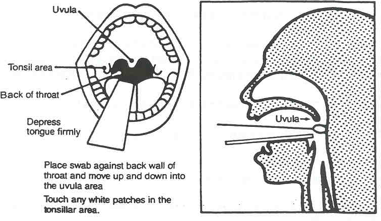 - Rubbing the swab over both tonsillar pillars and posterior oropharynx.